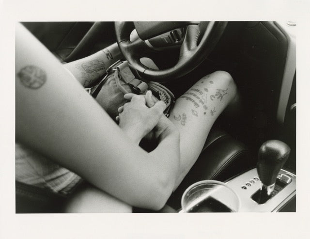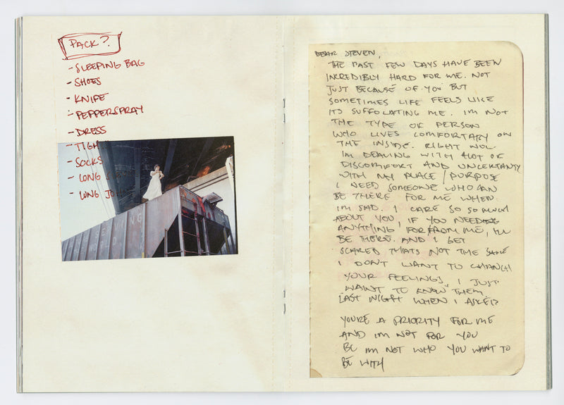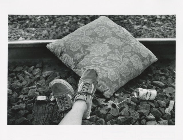 In Mike Brodie’s Failing, there is a photograph of a young woman sound asleep on a pink blanket. Skip ahead in the book and we see her now awake, holding a cigarette on a makeshift bed in the back of a van. A little further up, she’s shooting up through her foot next to a Lisa Frank book, and on the next page there’s just her pregnant stomach under a tank top that says “baby.” Across the vein on her right arm is the letter X, which stands for X marks the spot.